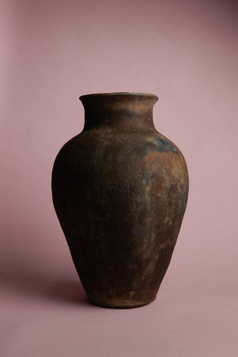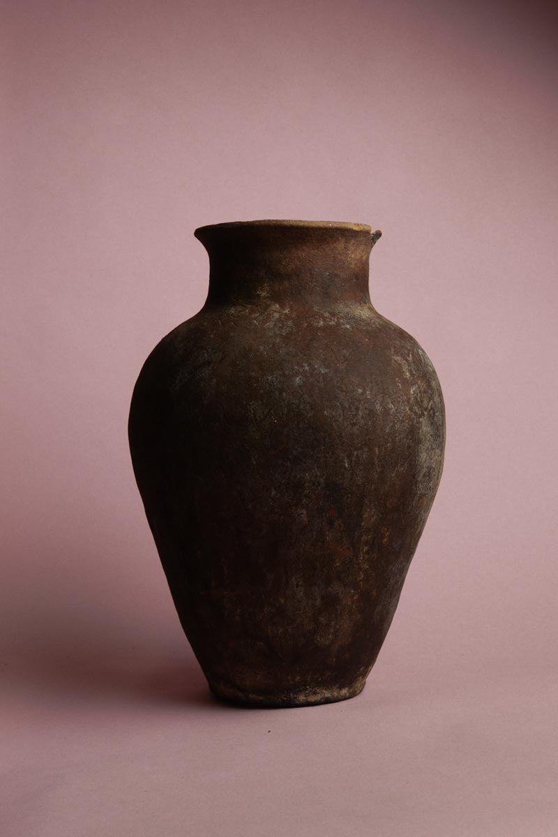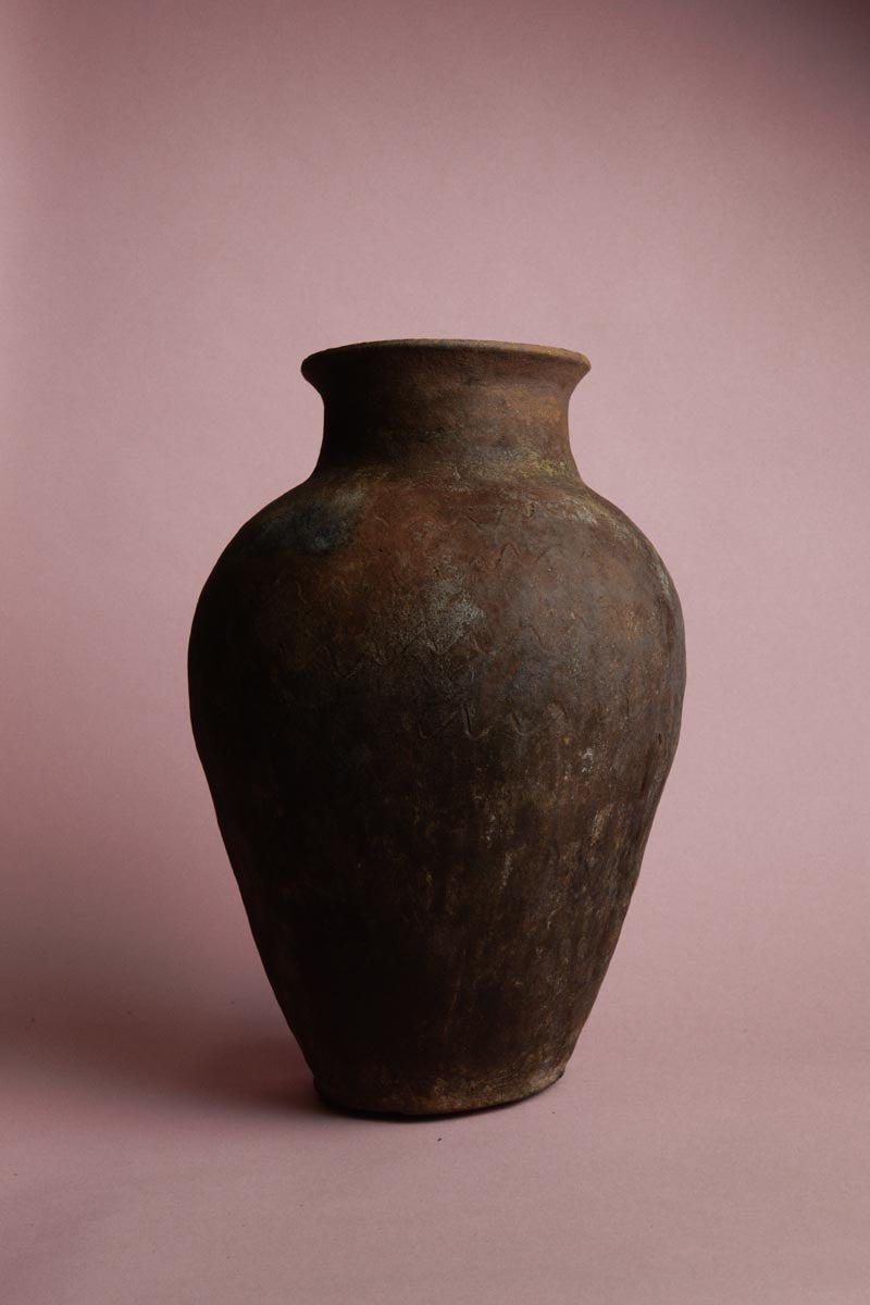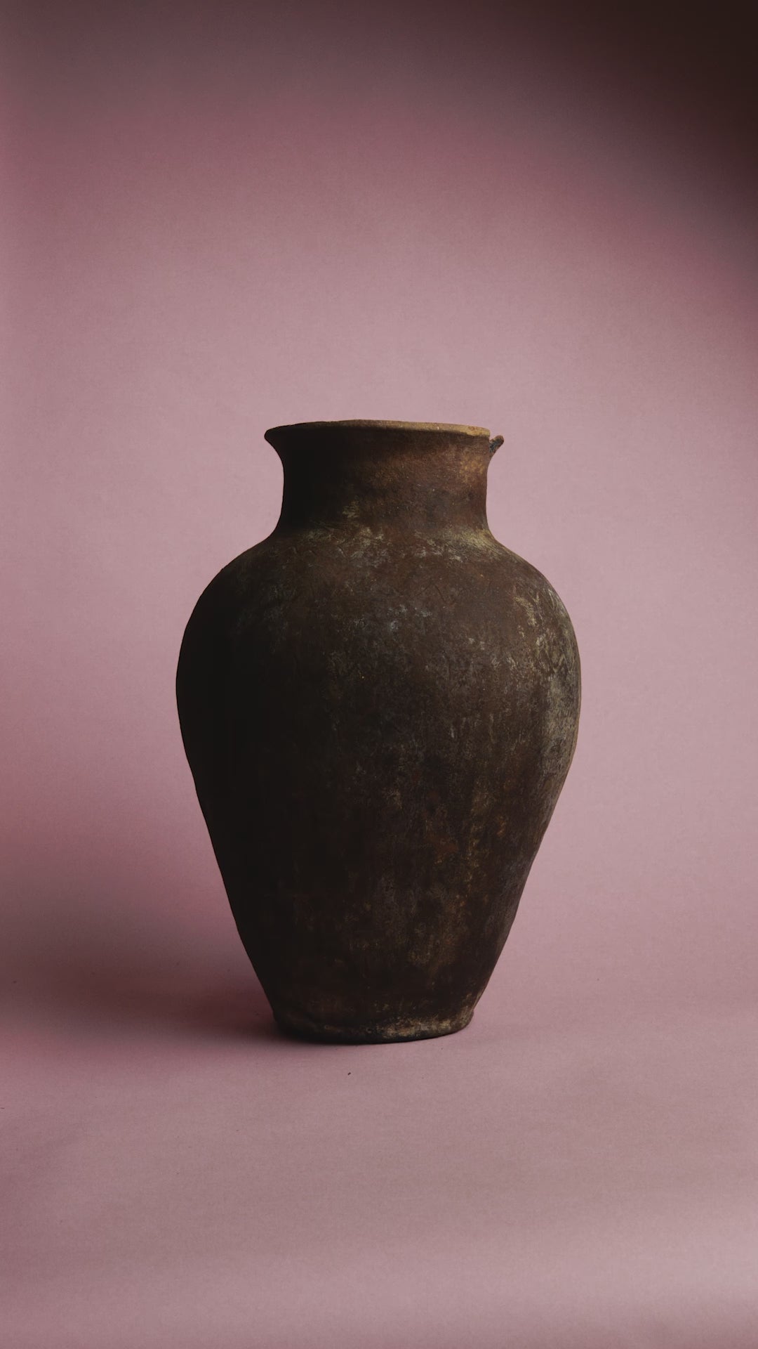 This handcrafted Turkish pot from Cappadocia was traditionally used to store dry goods. Its smooth, tapered form and rich, earthy patina reflect the functional beauty of central Turkish pottery.