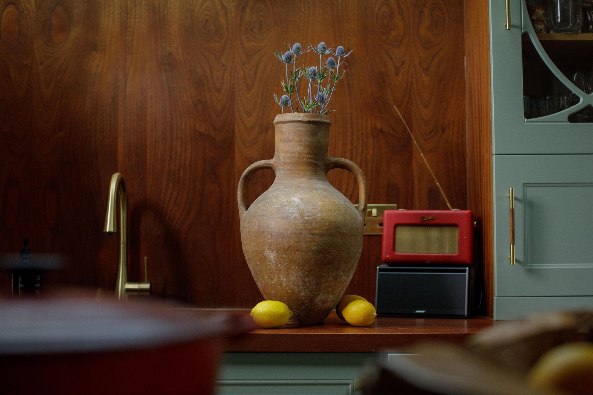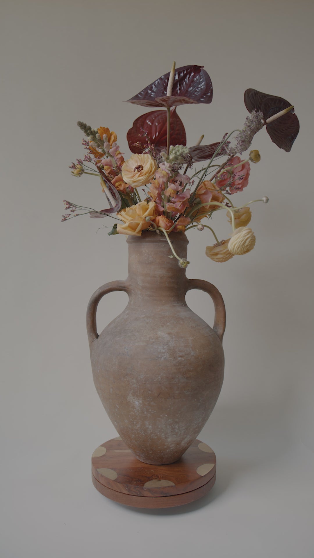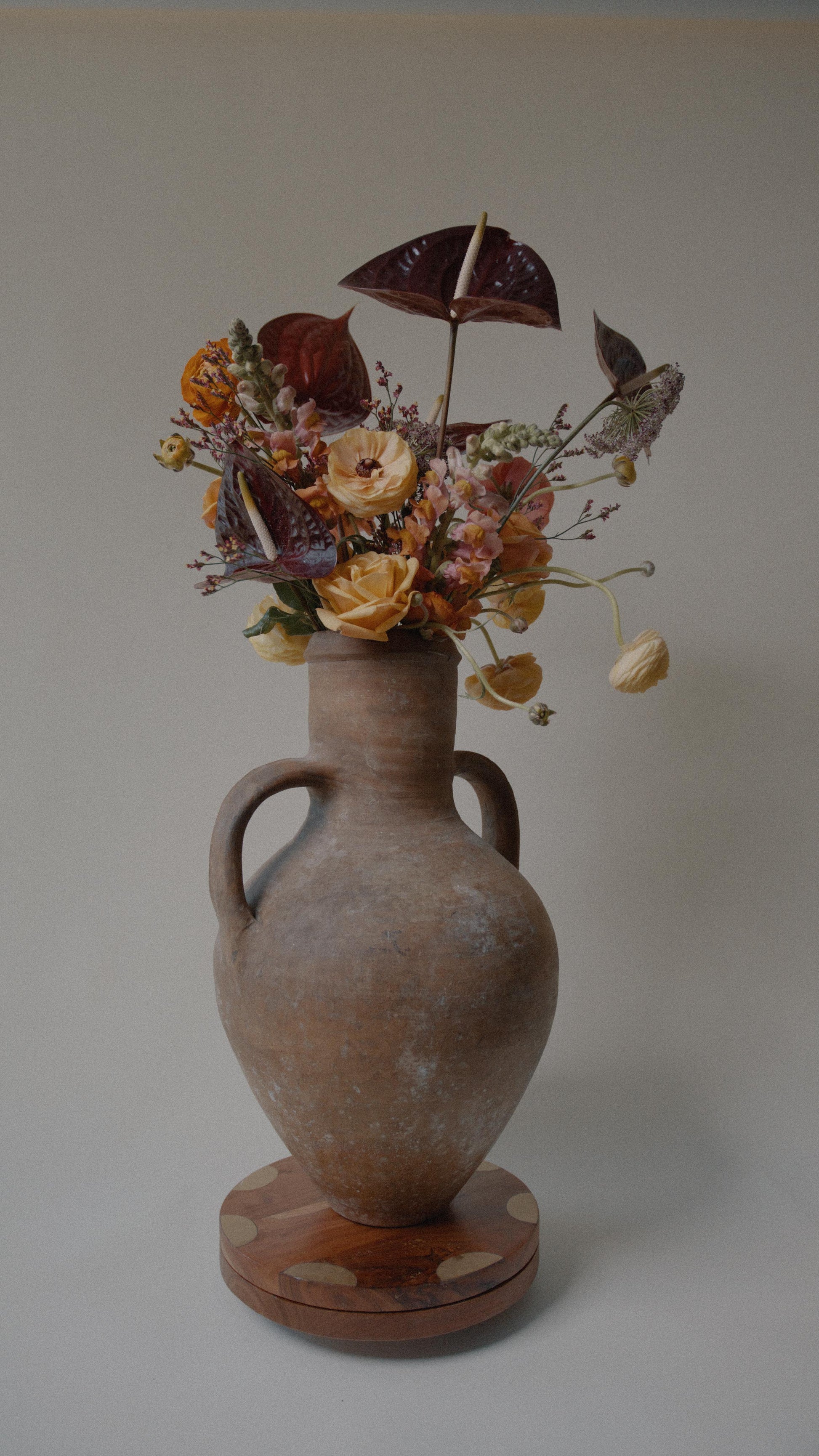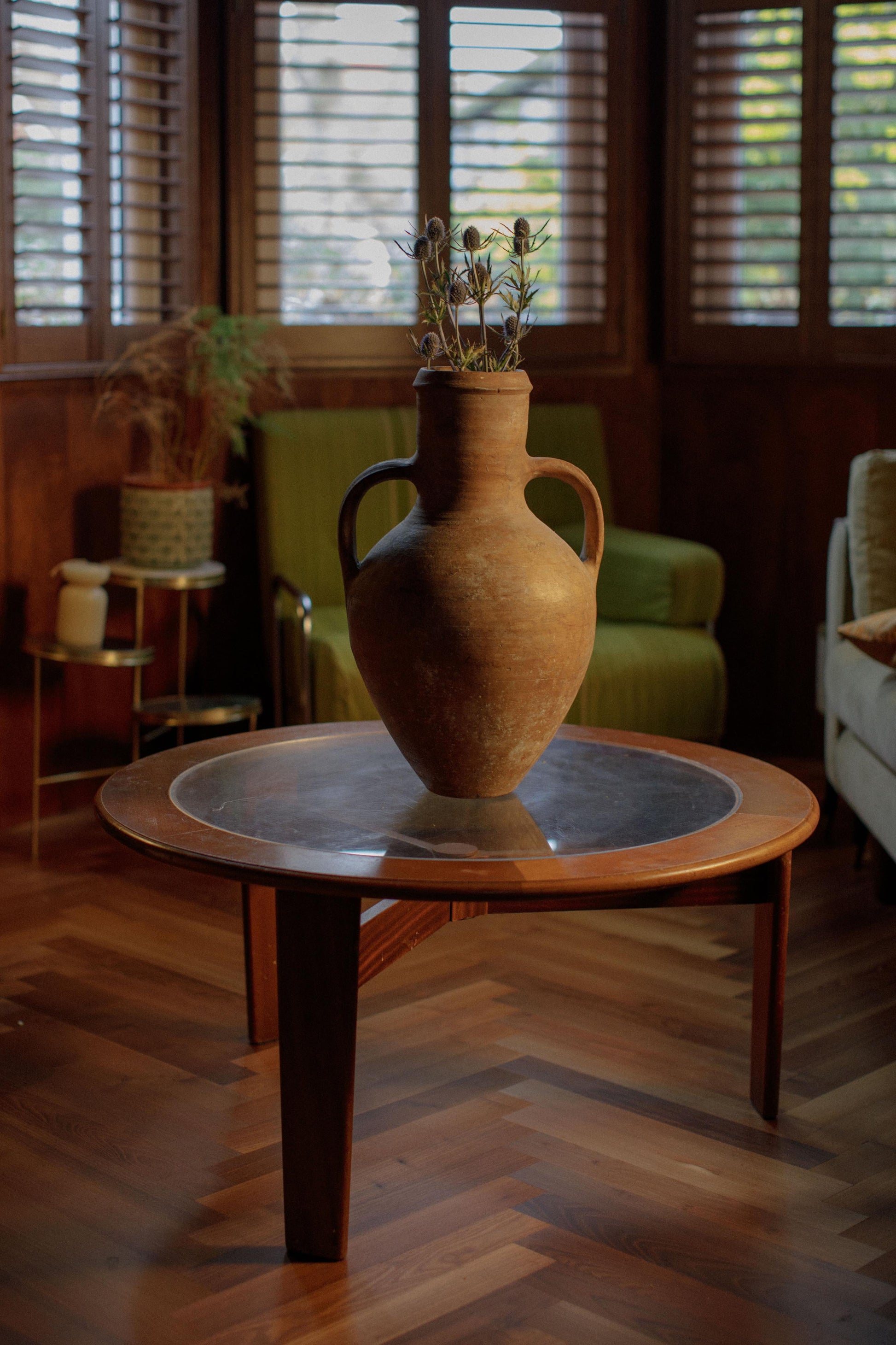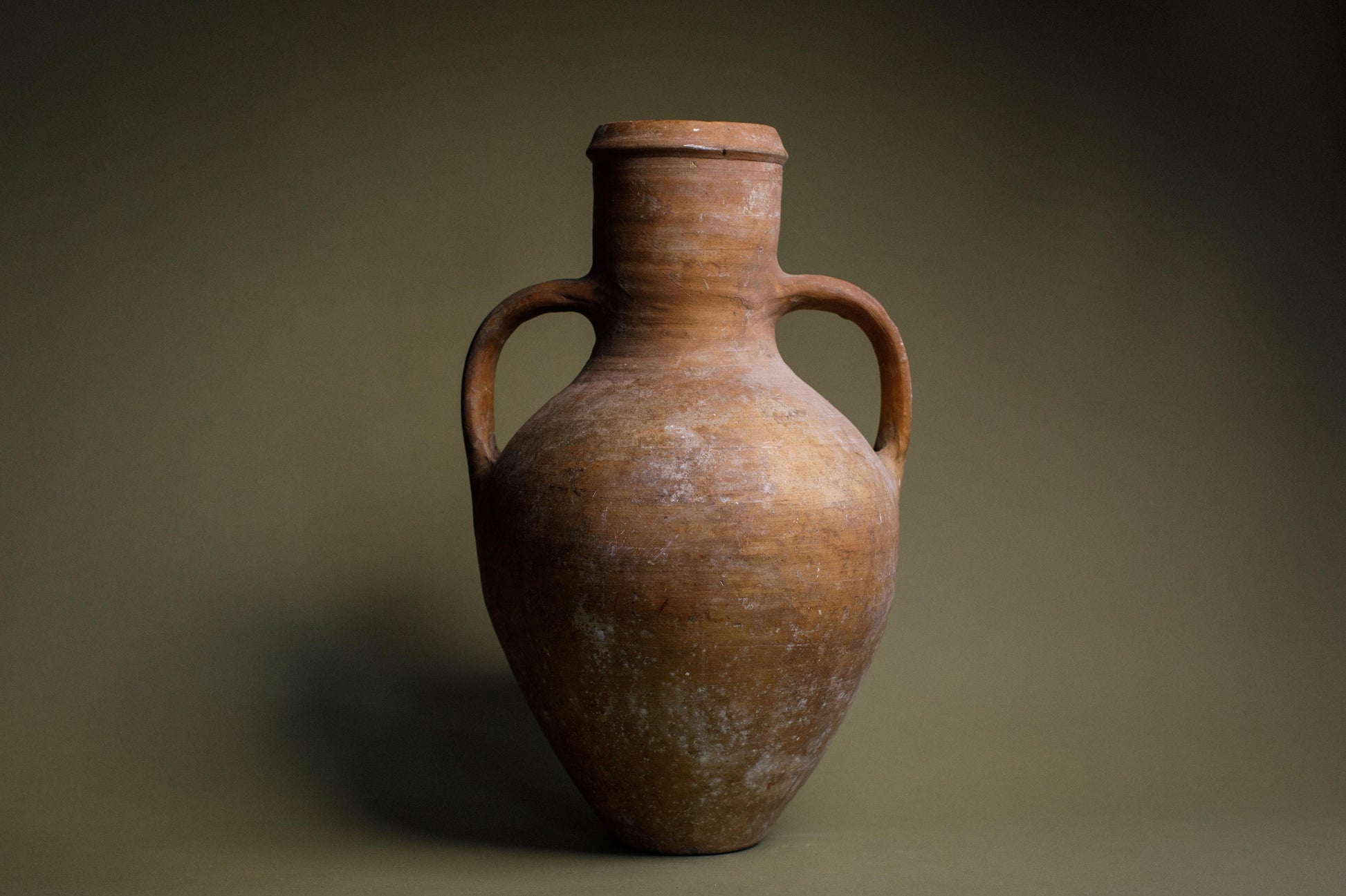 This Hatay pot, a masterpiece of Turkish craftsmanship, exudes an earthy, time-worn beauty with its natural clay texture and traditional form. Handcrafted by artisans, it's a rare relic of cultural heritage, now even more precious due to the earthquake's impact on its availability. A truly unique collector's treasure and an exquisite vase centrepiece.