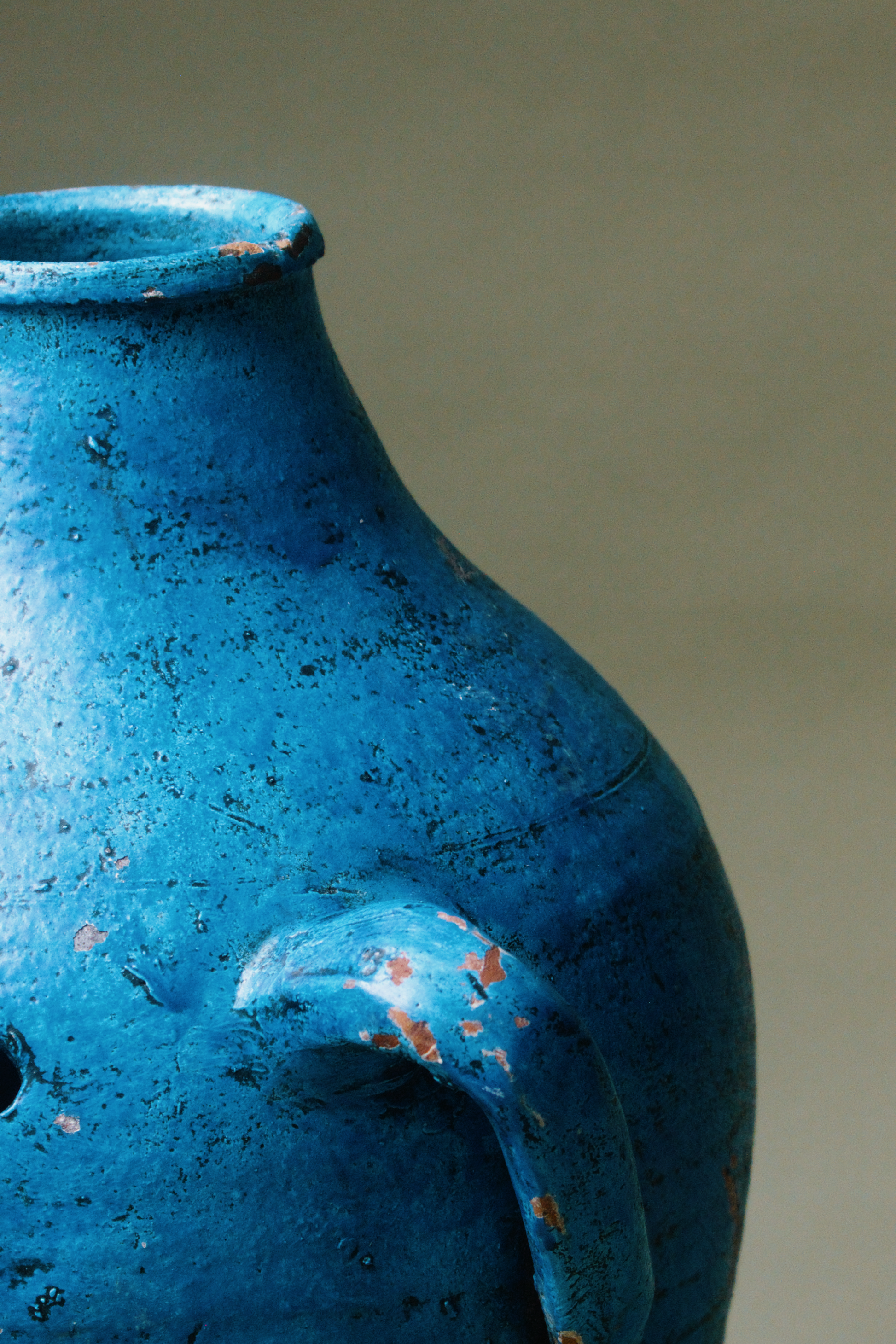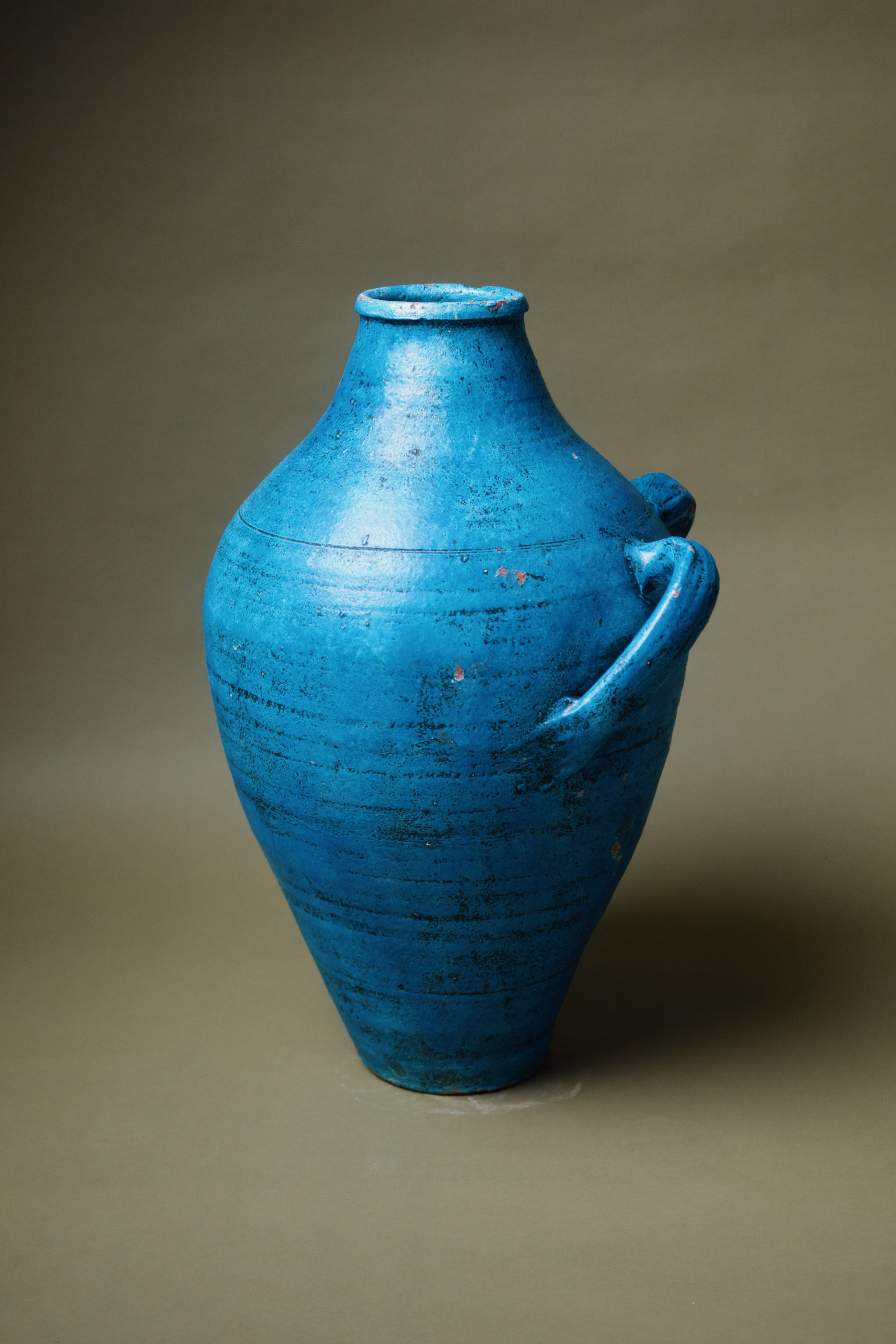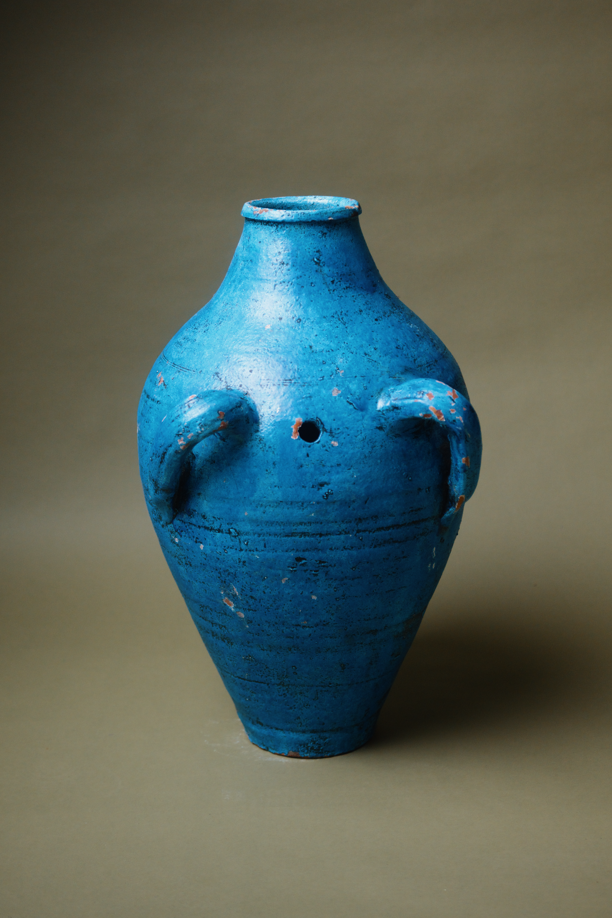 This vibrant Mediterranean blue terracotta amphora features dual handles and a classic shape. Originally crafted to store liquids or grains, it's bold colour and weathered patina evoke the charm of sun-soaked coastal regions. The amphora’s distinct, slightly rustic finish adds a pop of colour and history, ideal for eclectic or Mediterranean-inspired interiors.