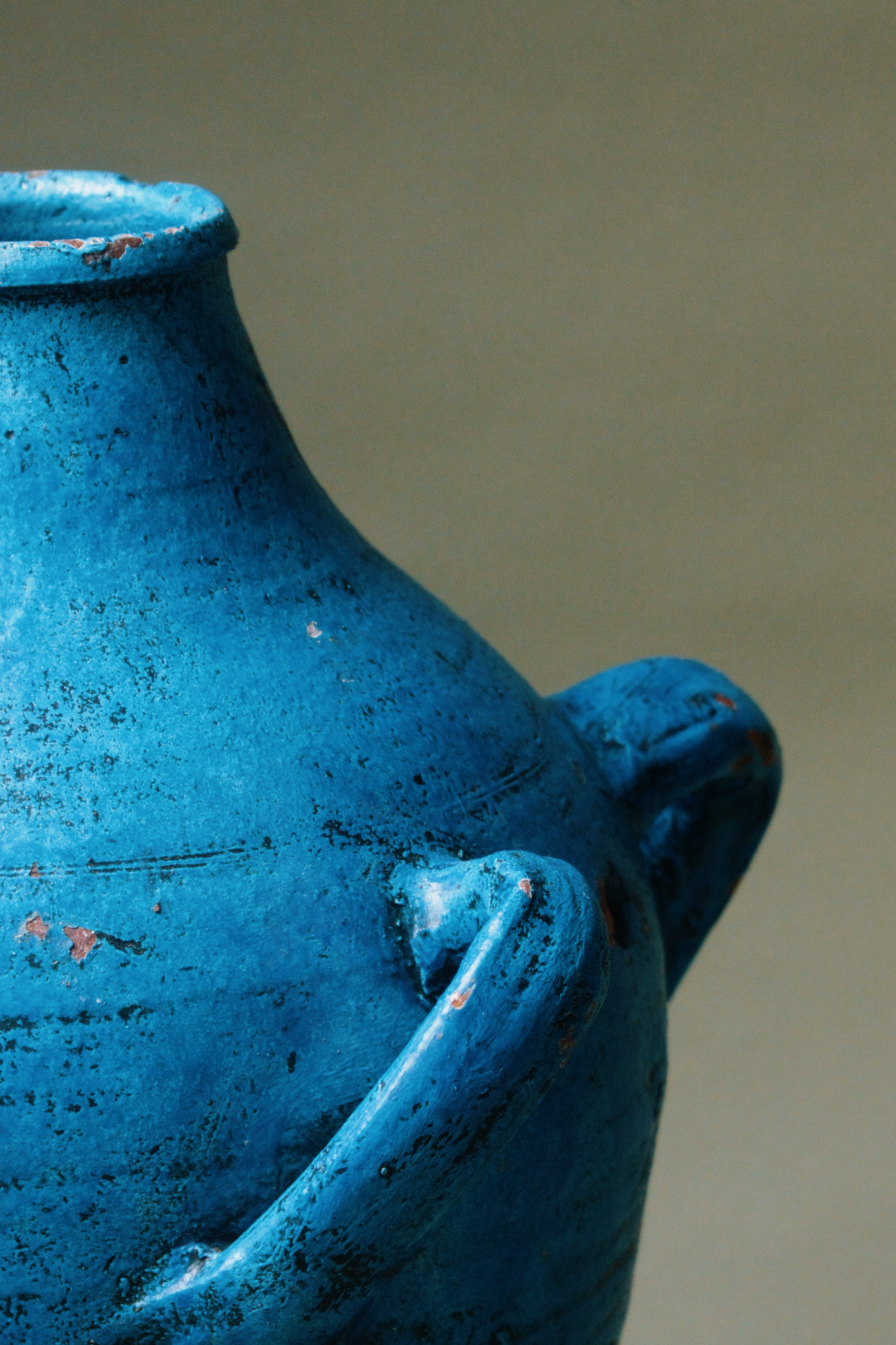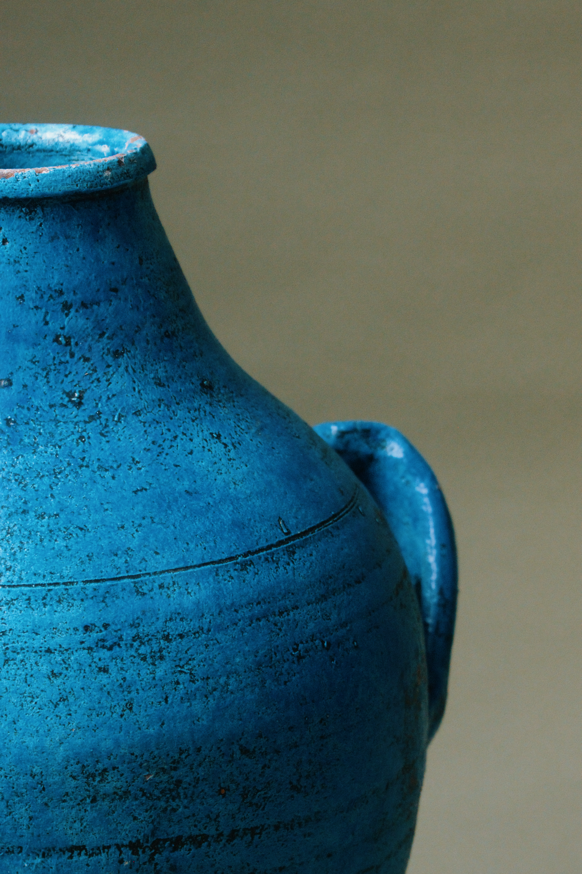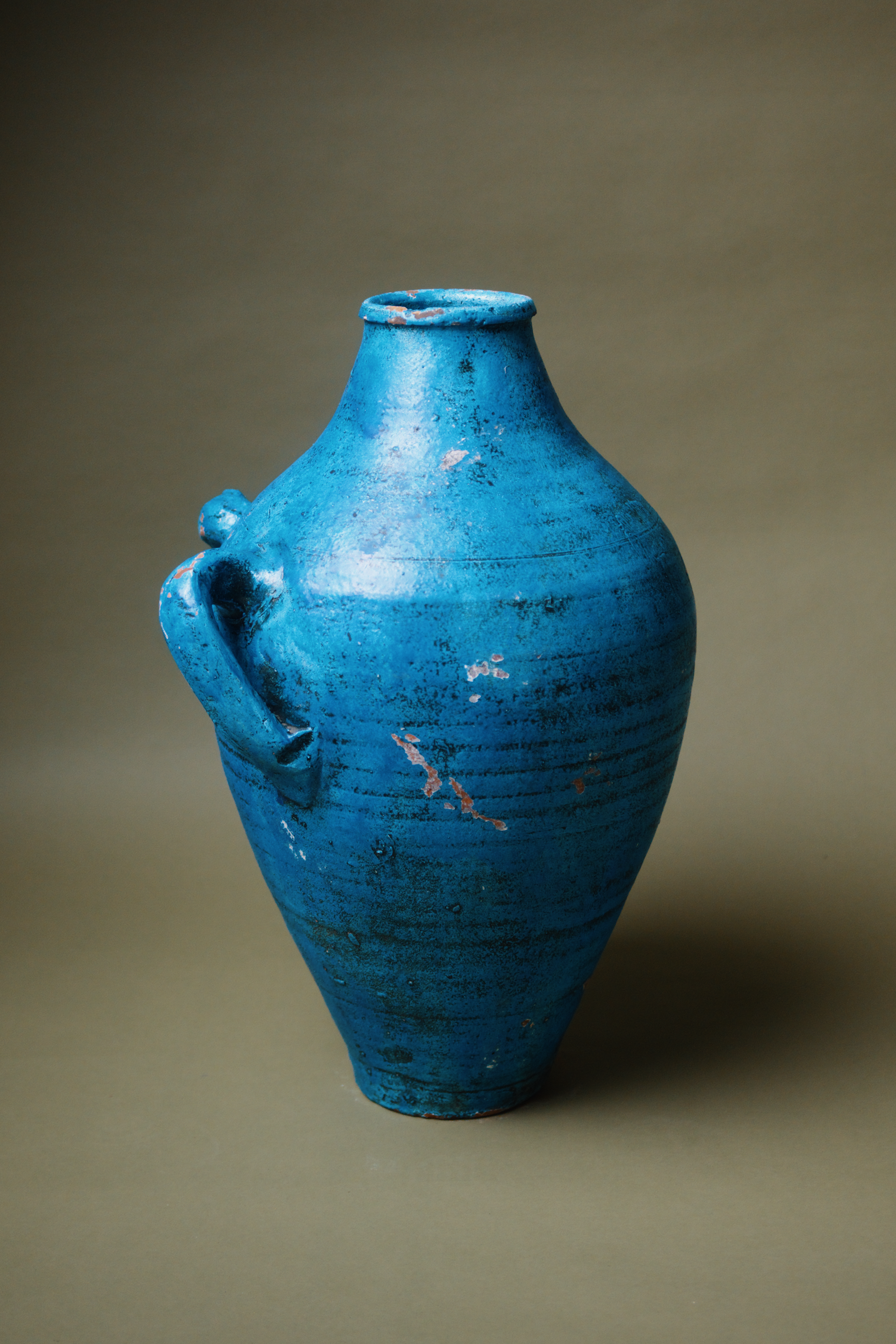 This vibrant Mediterranean blue terracotta amphora features dual handles and a classic shape. Originally crafted to store liquids or grains, it's bold colour and weathered patina evoke the charm of sun-soaked coastal regions. The amphora’s distinct, slightly rustic finish adds a pop of colour and history, ideal for eclectic or Mediterranean-inspired interiors.