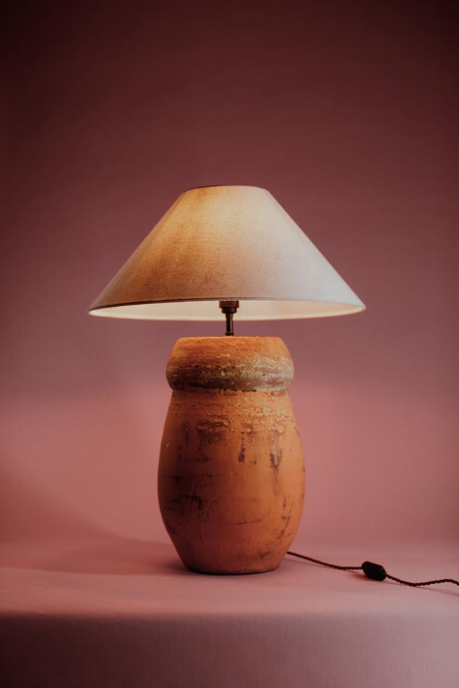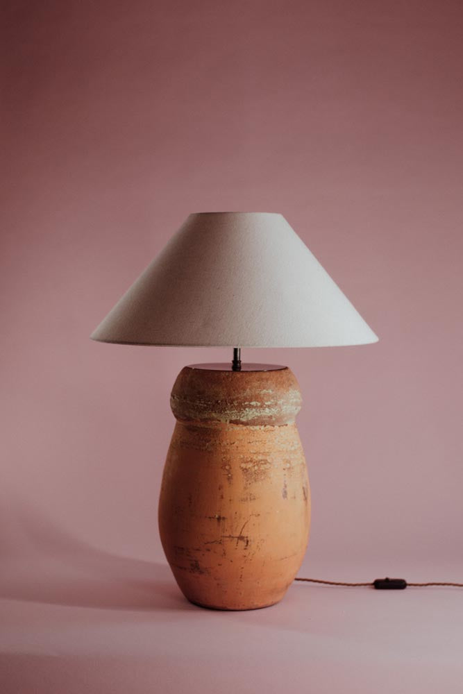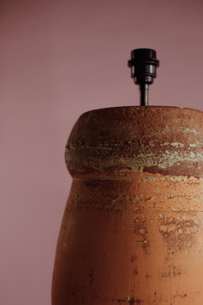 Now expertly converted in the UK into a functional table lamp, its slender shape and earthy tones bring a touch of ancient craftsmanship to your interior.