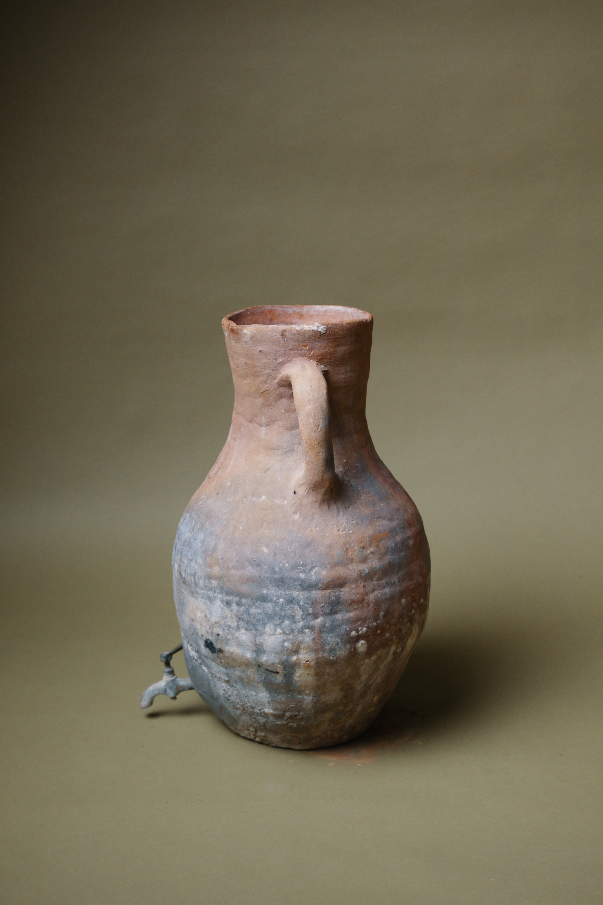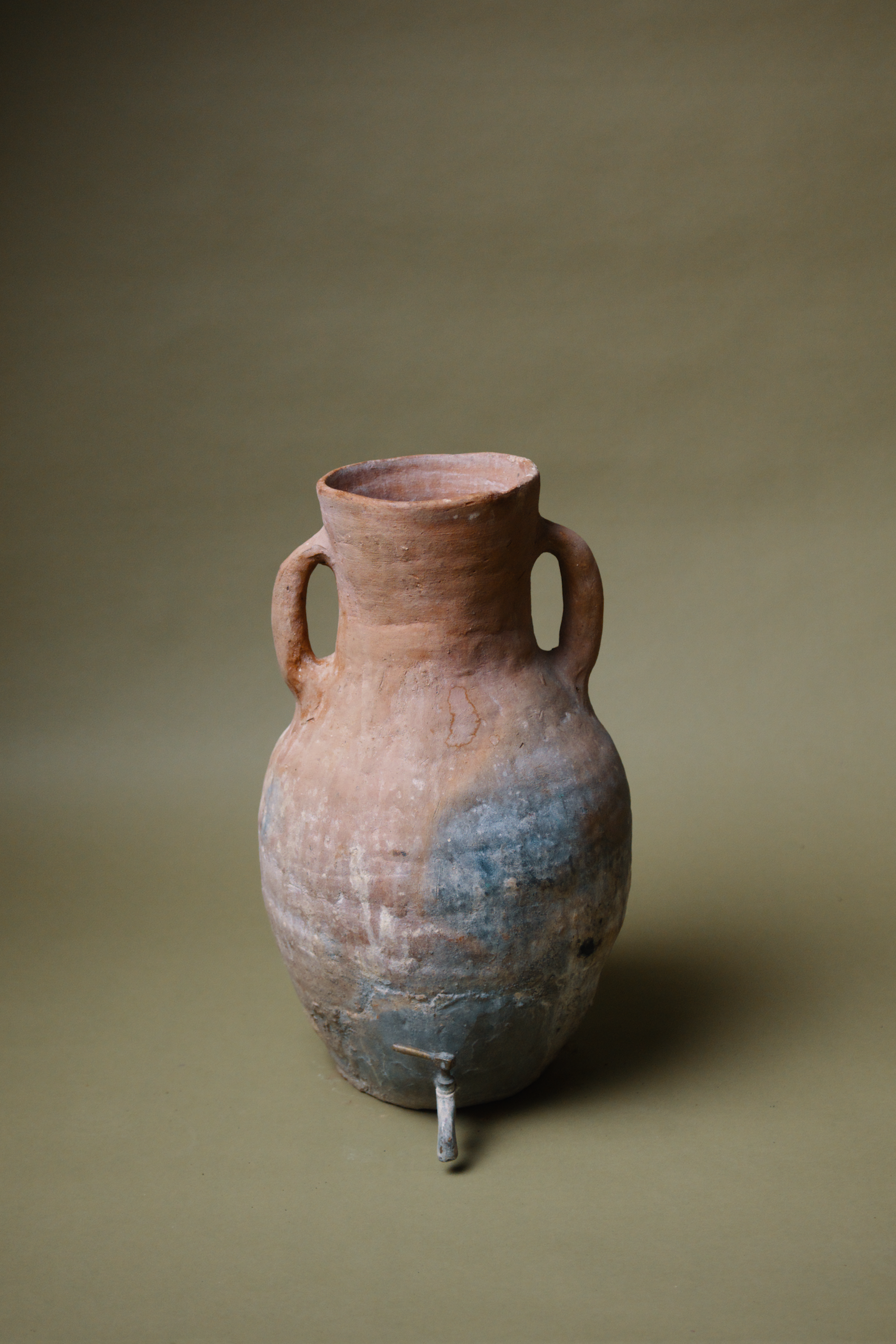 This vintage earthenware pot, complete with a rustic tap, speaks to its former life as a practical water dispenser in rural settings. The pot’s earthy tones and naturally weathered surface reflect its authentic heritage, while subtle traces of use add a unique character. Ideal for adding a rustic or farmhouse touch to interiors, this piece complements cottage-style or country home decor. The built-in tap serves as a charming reminder of its original purpose, adding both visual interest and historical significance.