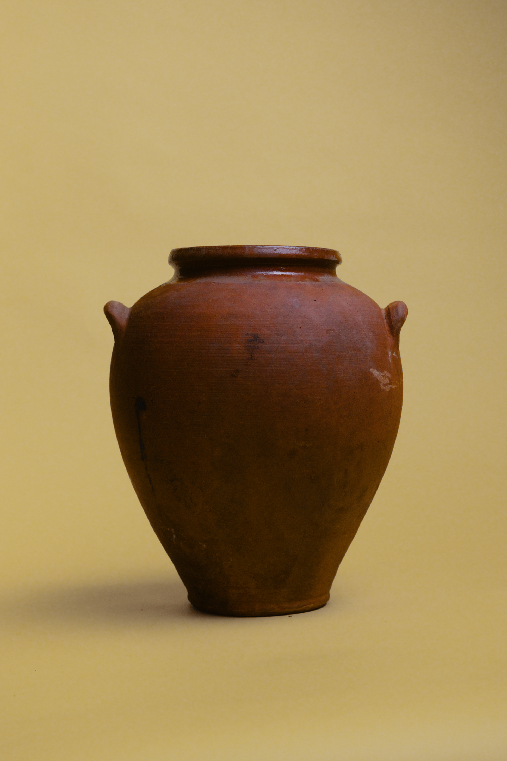 This handcrafted Turkish pot from Konya was traditionally used to store household essentials like water or grains. Its rounded body and single handle reflect the simple, utilitarian design of central Anatolian pottery.