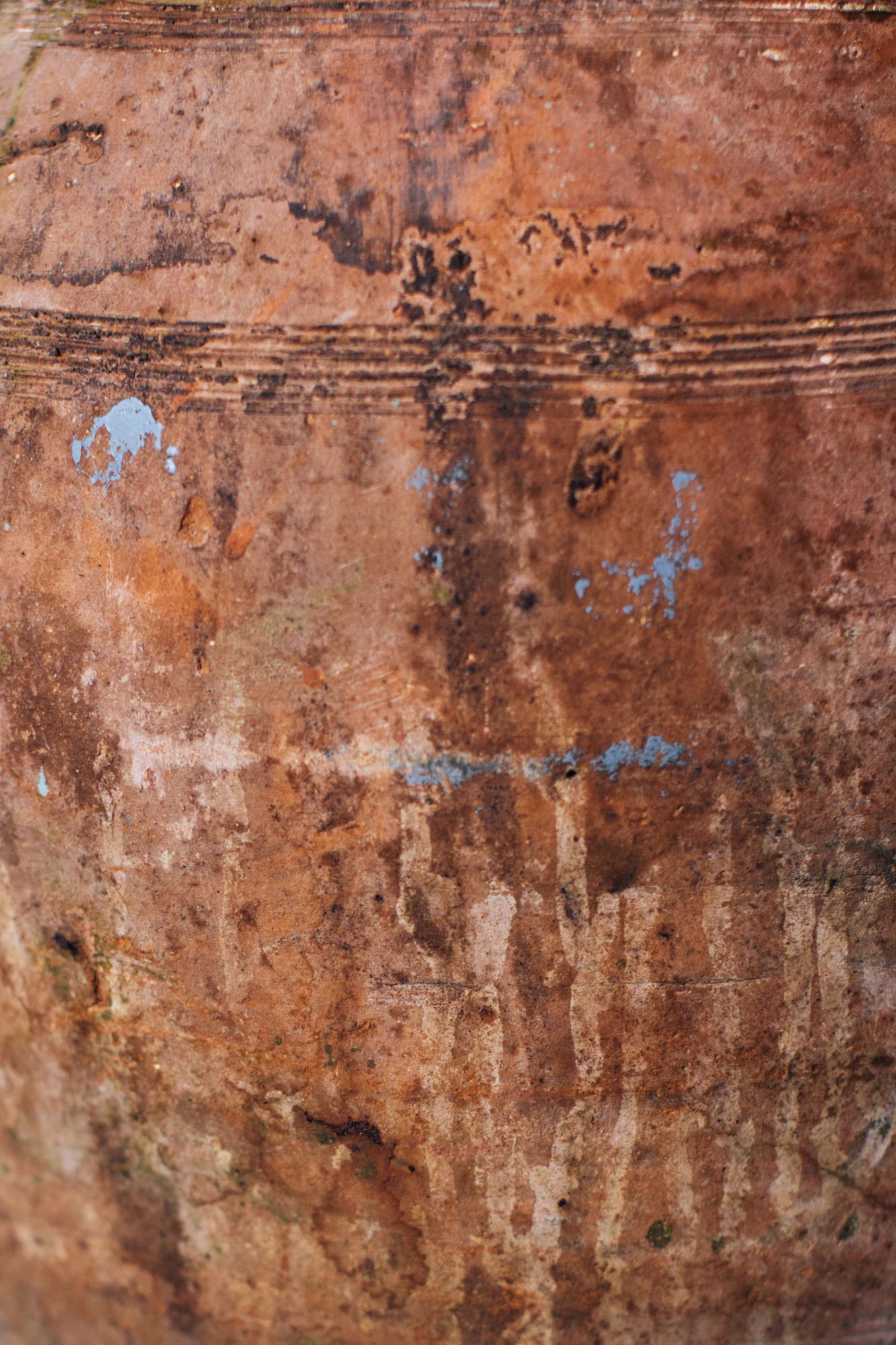 From the Konya region of central Turkey, this antique double-handled pot is a classic example of the area’s distinctive pottery — known for its rich terracotta clay and subtle green-glazed necklines. Once used to store olive oil, the pot carries a natural mix of earthy tones, with traces of aged glaze softening into the unglazed clay beneath.