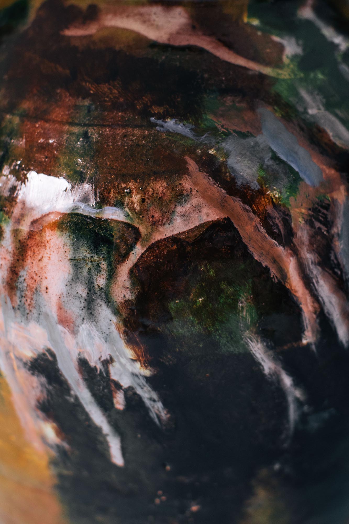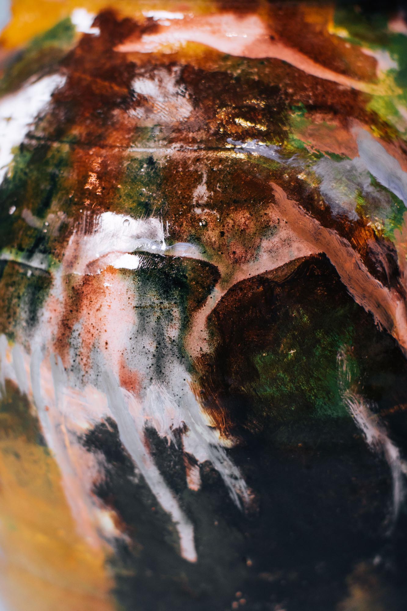 Rich in heritage and unmistakable in character, this distinctive lamp began life as a traditional storage vessel used for olive oil and grains. Hand-thrown in the pottery villages of Kınık in western Turkey, each pot was brush-painted with mineral-rich pigments that melted and flowed in the kiln, creating those beautiful sunset tones of amber, green and black. The result is a naturally expressive glaze that feels painterly and alive — no two pieces ever alike.