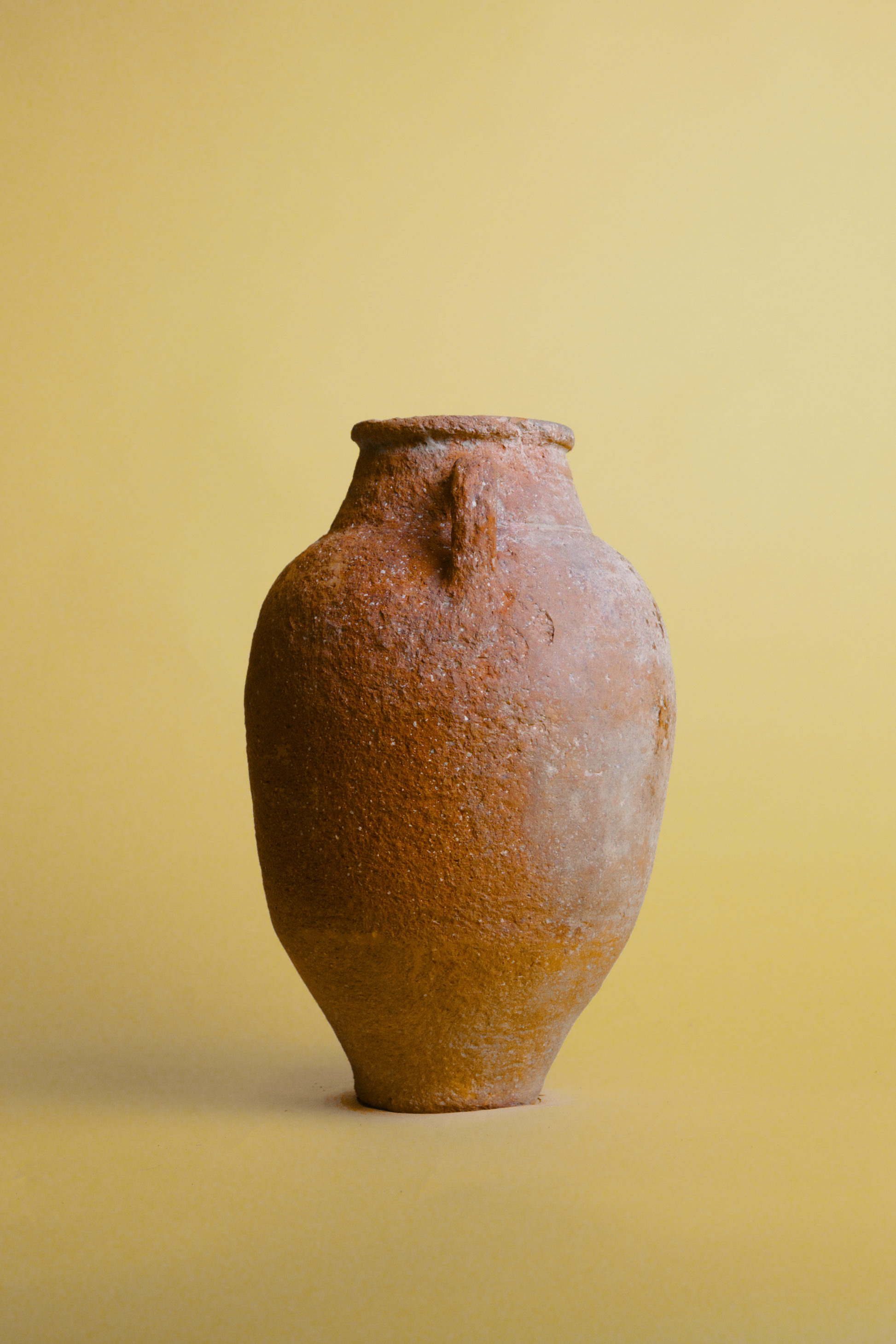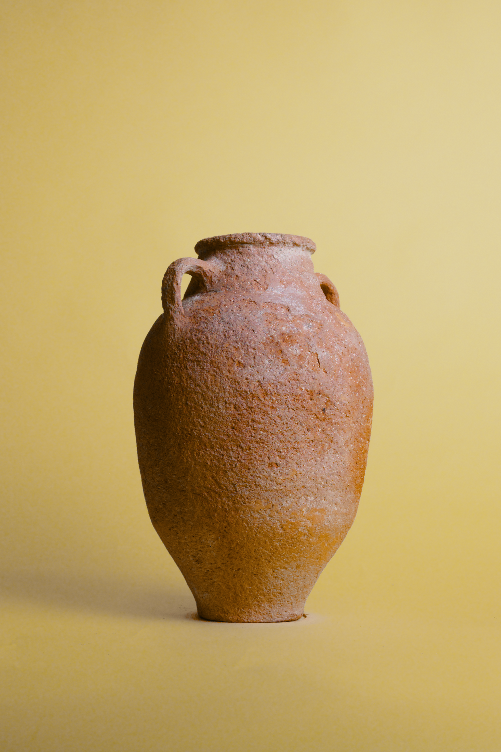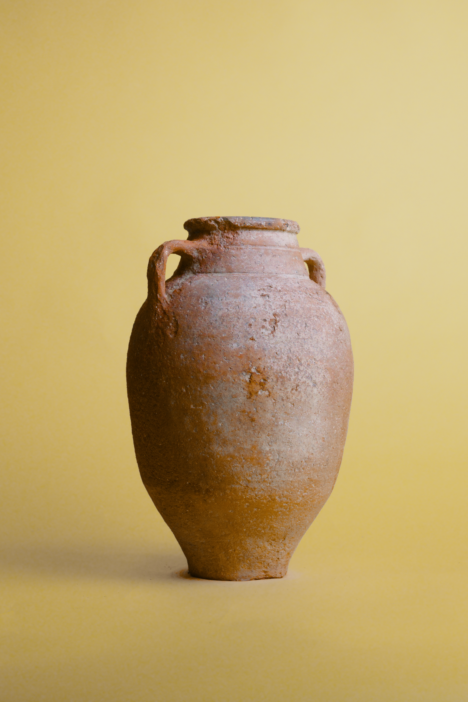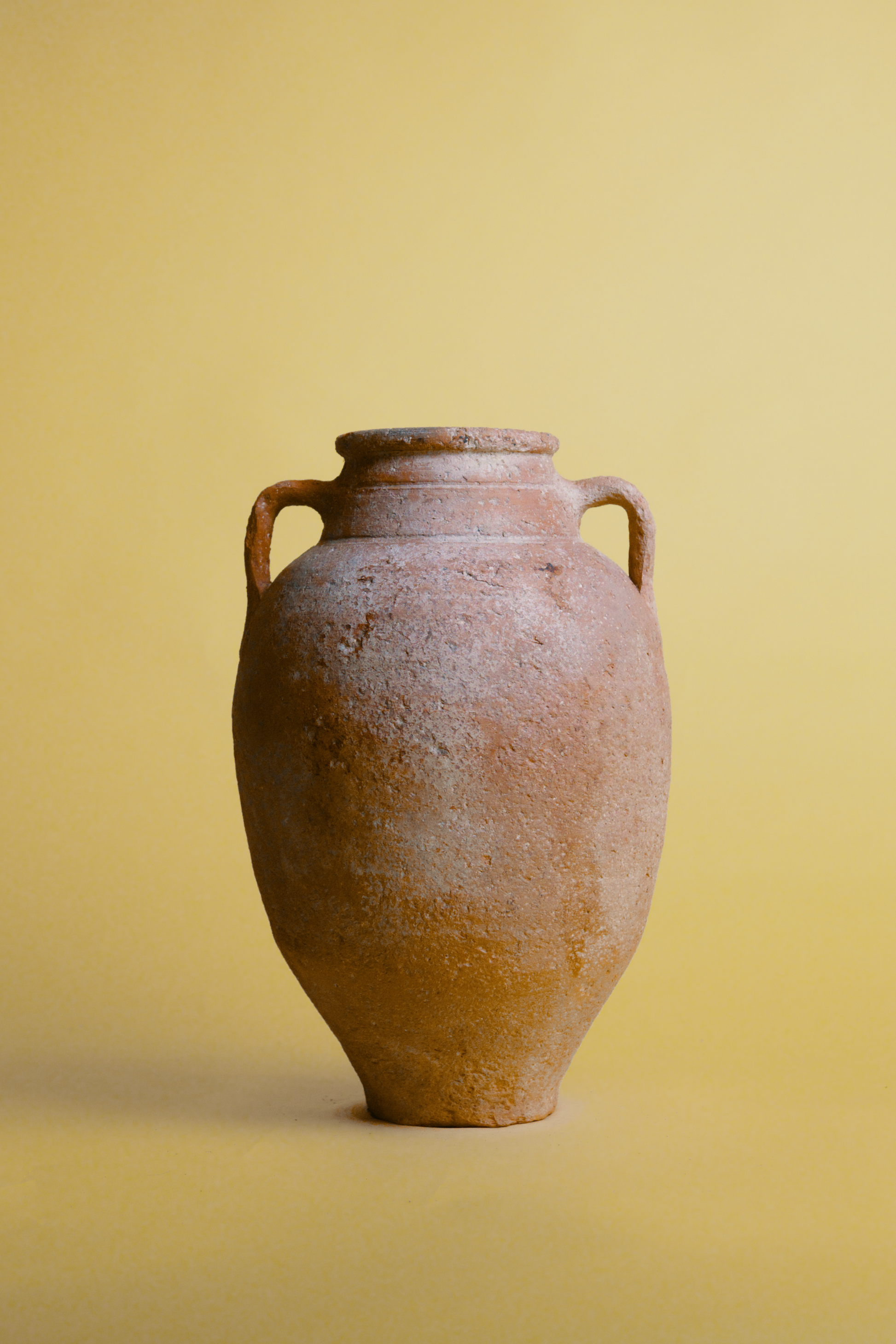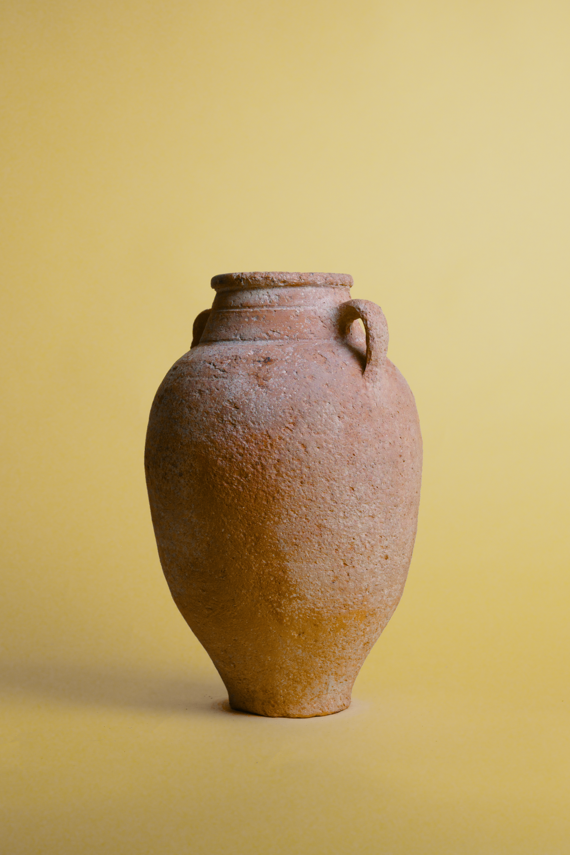 This aged terracotta storage jar, with its beautifully textured surface and dual handles, embodies the rustic charm of Mediterranean pottery. The pot’s natural, earthy tones and rugged finish reflect its origins, adding authenticity and warmth to any space that values heritage and simplicity.