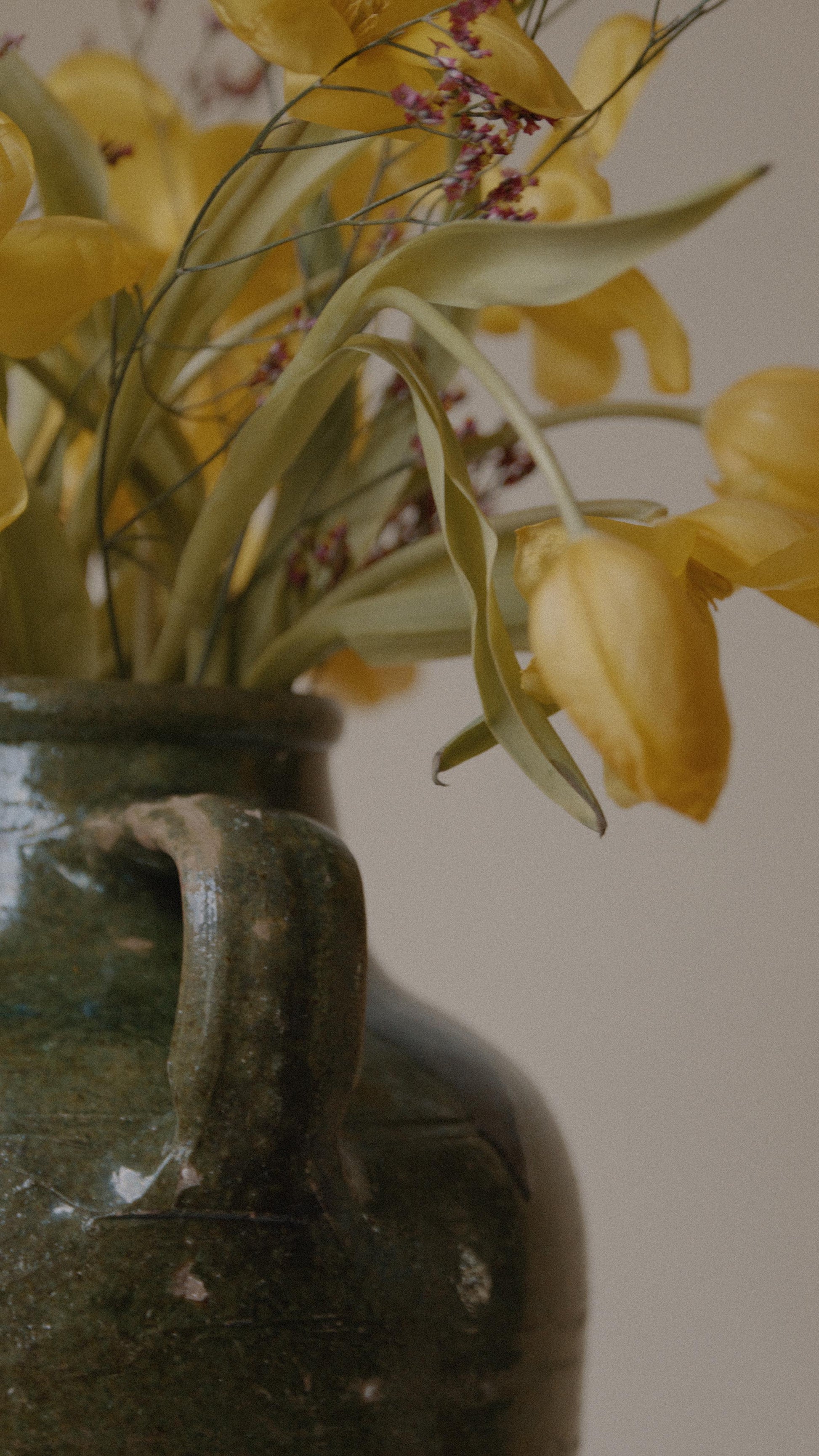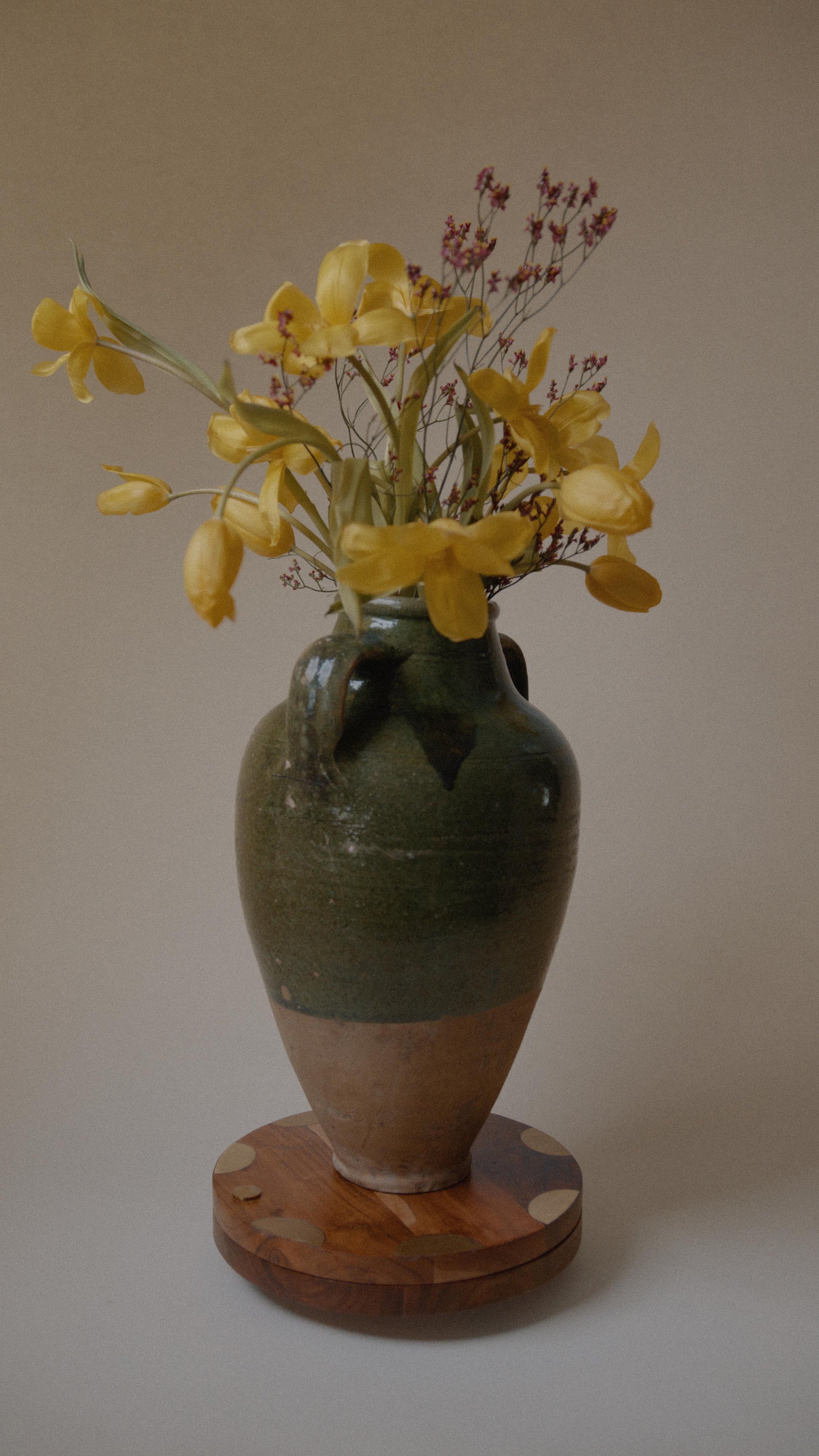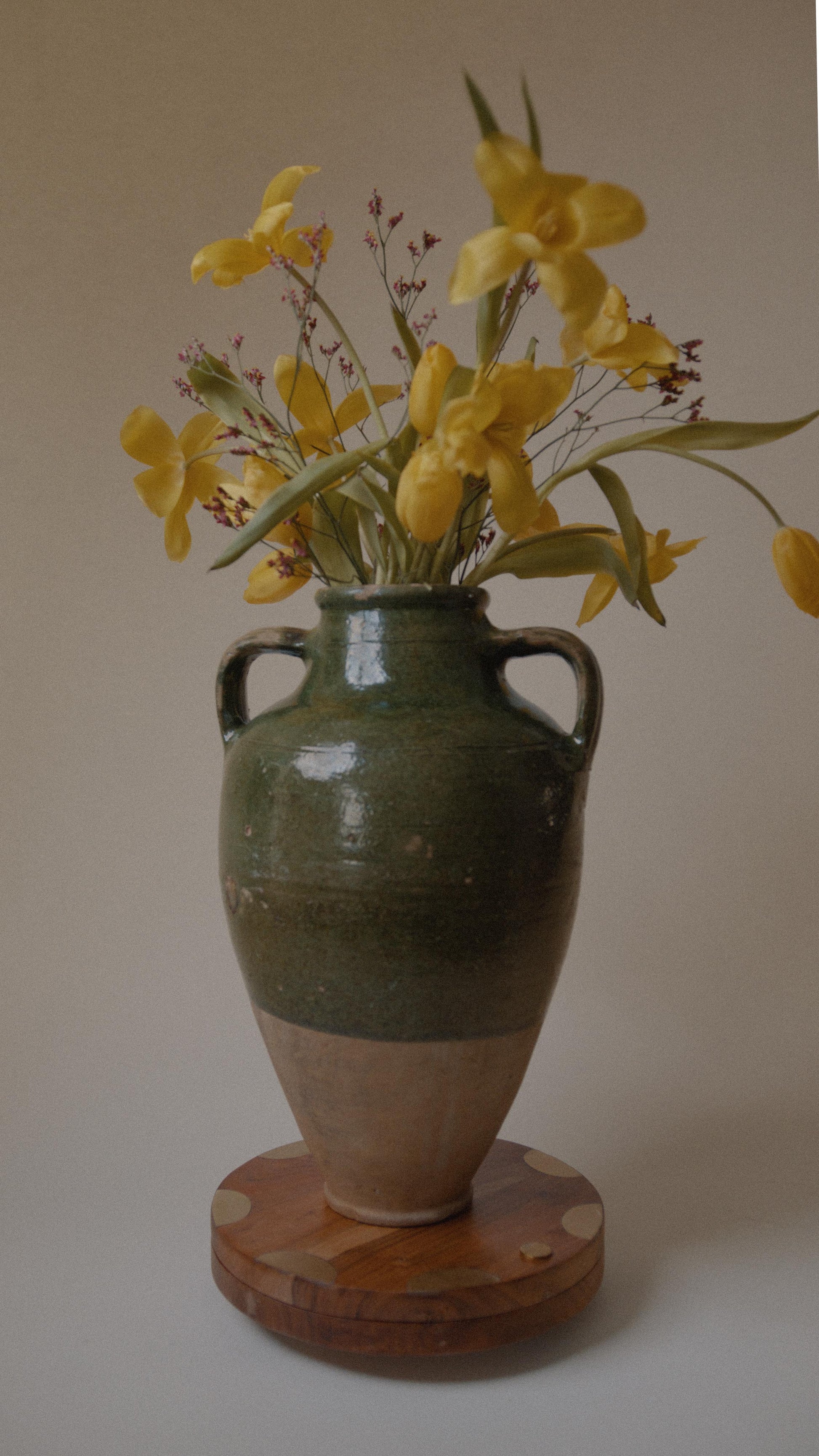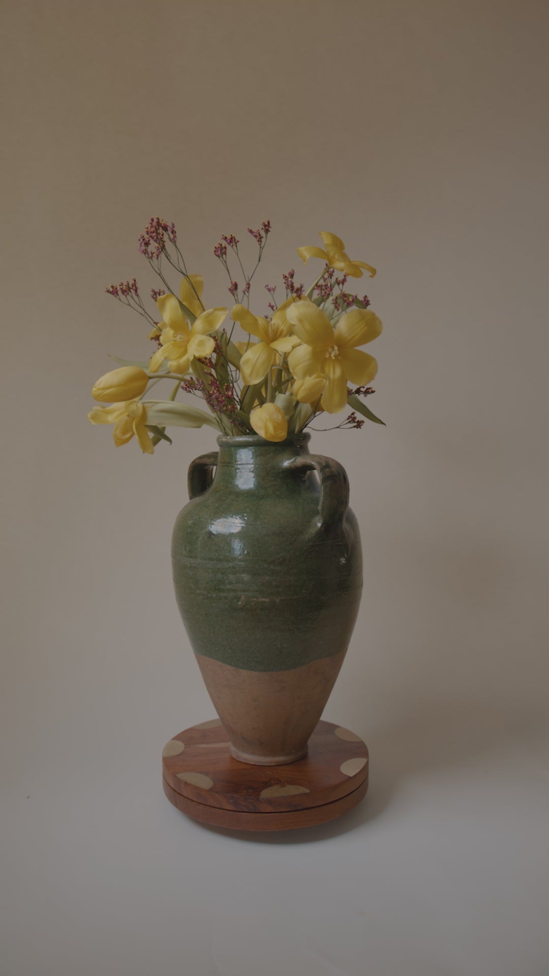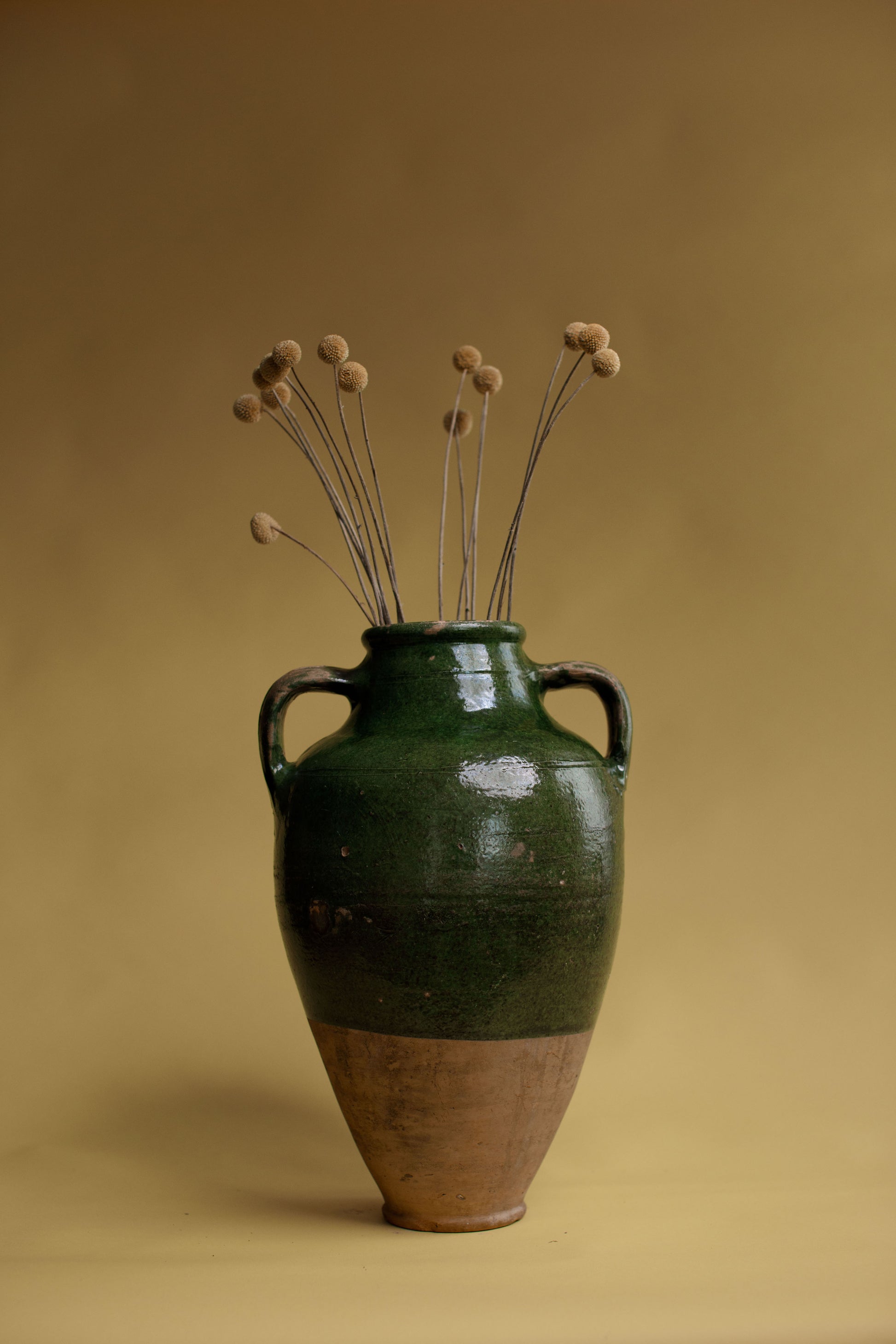 This handcrafted Turkish pot, originating from Konya, once stored essentials like grain and water. The clay's porosity helped keep the contents cool and preserved, which was particularly valuable in the arid climates of central Anatolia. Today, its distinctive form and markings blend tradition with contemporary style, making it a unique vase centrepiece for your space.