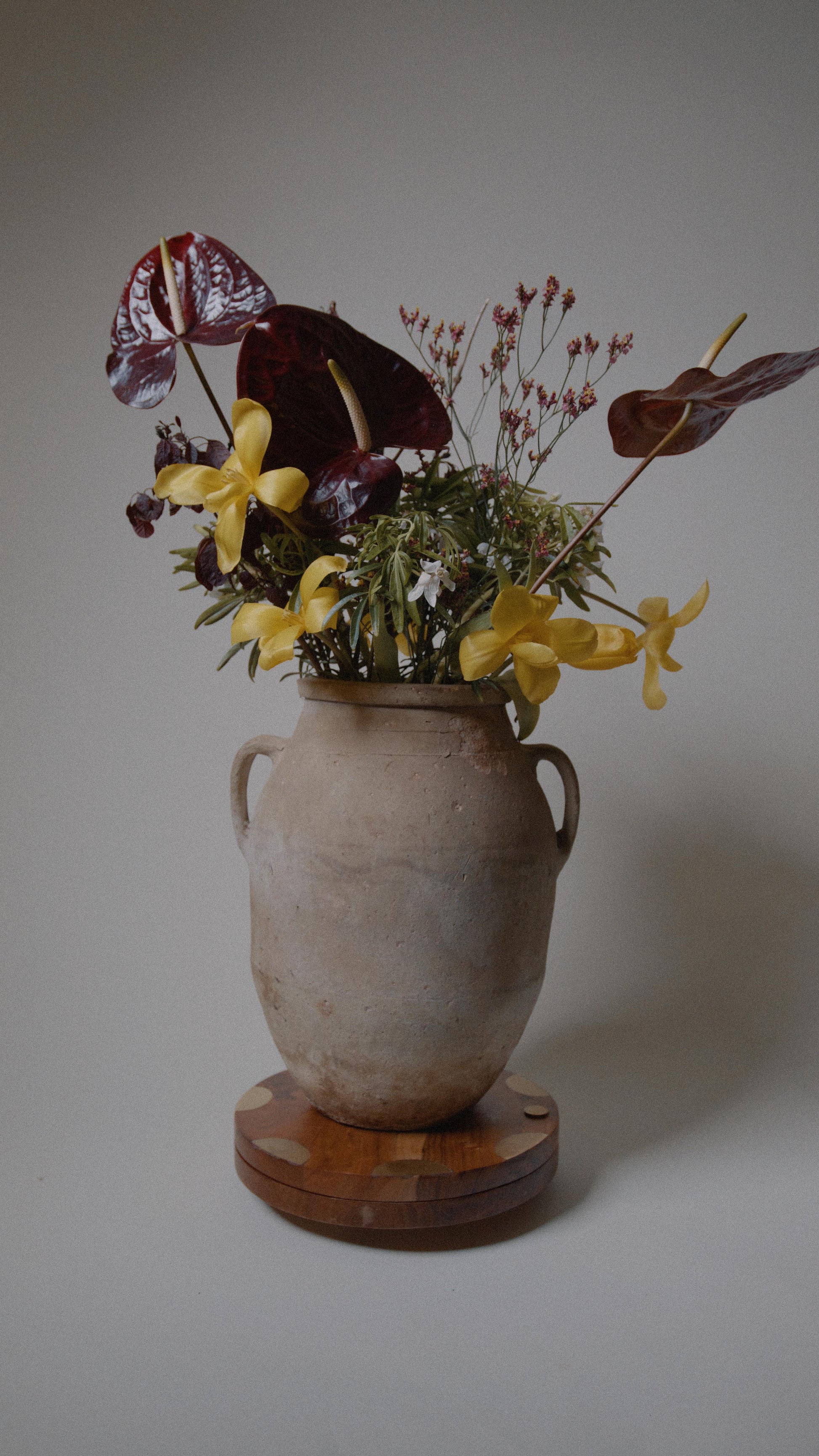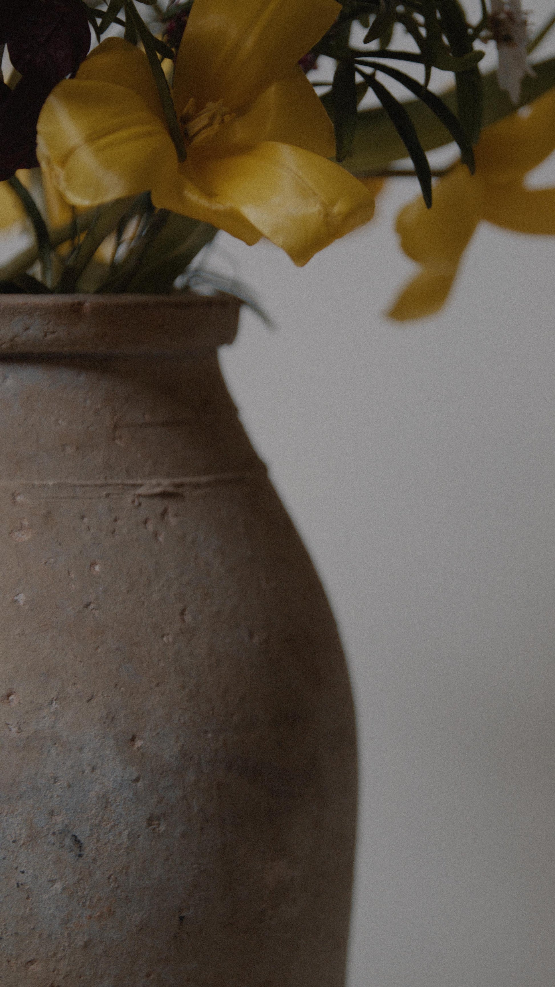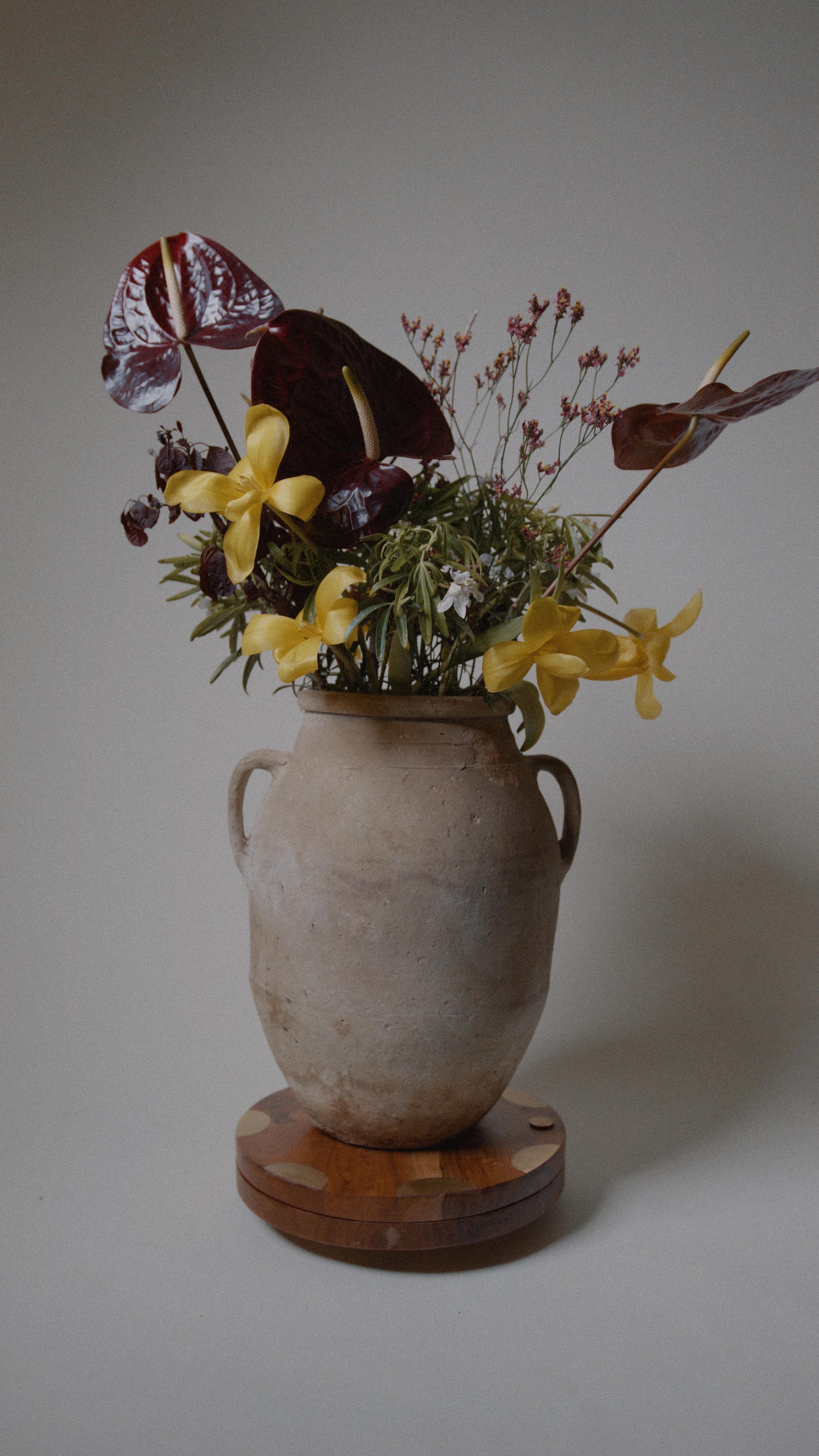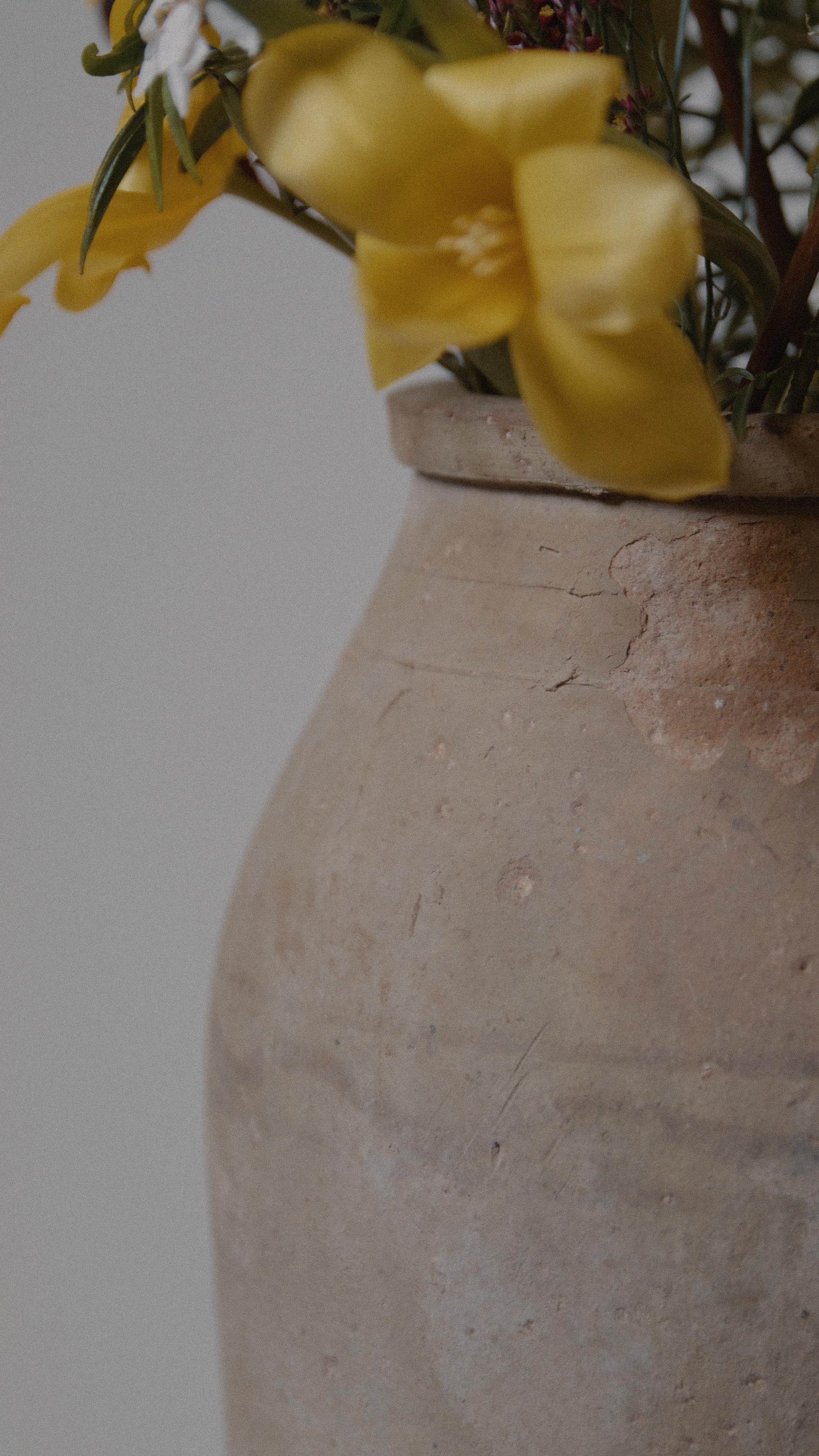 This handcrafted Turkish pot, originating from Konya, once stored essentials like grain and water. The clay's porosity helped keep the contents cool and preserved, which was particularly valuable in the arid climates of central Anatolia. Today, its distinctive form and markings blend tradition with contemporary style, making it a unique vase centrepiece for your space.